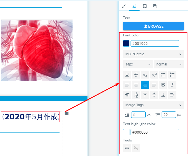 Any font used in an item (an e-Detailer, email or a landing page) appears in the WYSIWYG text editor.