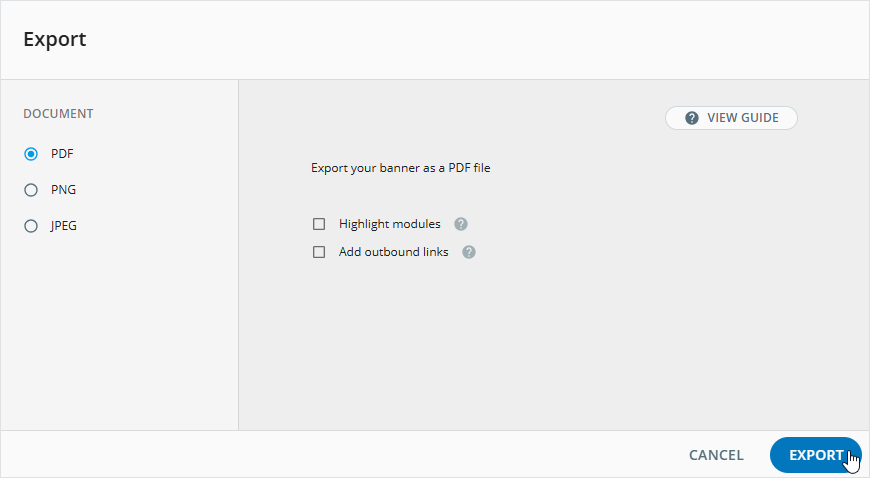 The following export options are available for banners: