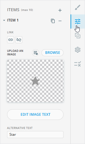 In eWizard, add the rating component to your email layout and customize each rating item on the component Properties tab.