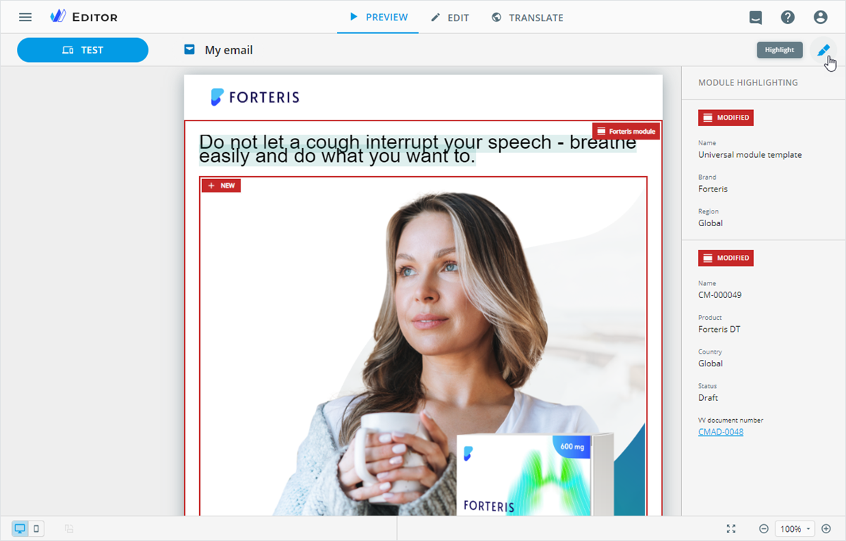 Changes to NaviGate modules are now highlighted in the Editor PREVIEW mode and in the resulting PDF file after the item publication or export.